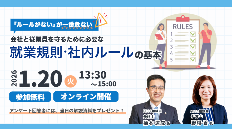 本セミナーでは、弁護士と社会保険労務士が登壇し、実際のトラブル事例を交えながら、企業が最低限整えておくべき就業規則・社内ルールのポイントを、法的視点と実務的視点の両面からわかりやすく解説します。「まだ小規模だから大丈夫」「これから整えればいい」と後回しにしがちなテーマについて、将来のリスクを見据えた“今だからこそ必要な備え”をお伝えします。
